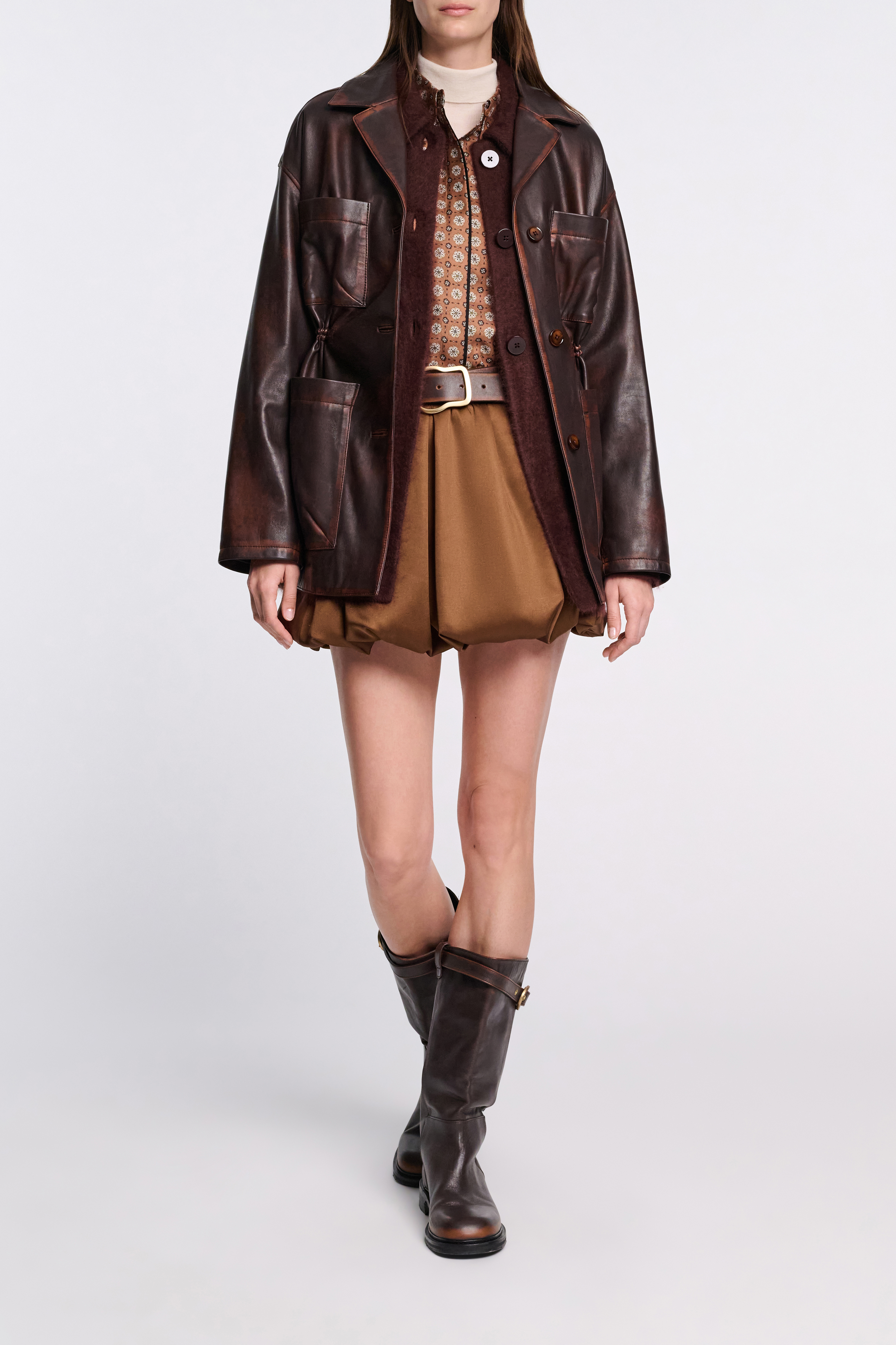 Сорочка має вільний крій і прикрашена фірмовим принтом у вигляді краватки. Сорочка виготовлена з шовкового твілу і має приховану планку на ґудзиках.