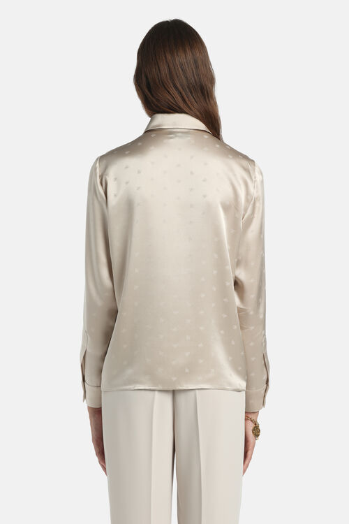 Шовкова сорочка з жакардового атласу з тональним візерунком Monogram, гострим коміром, тональними ґудзиками та довгими рукавами з широкими манжетами. Класичний крій.