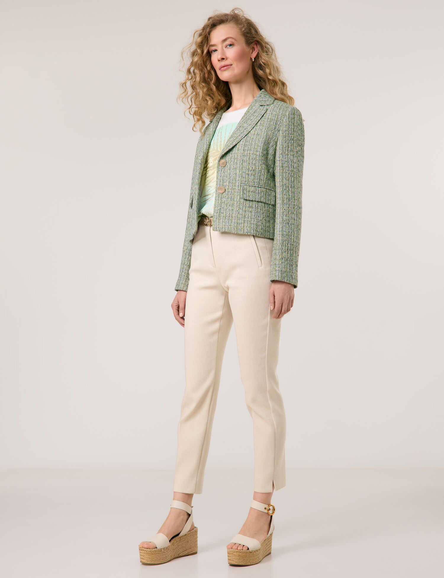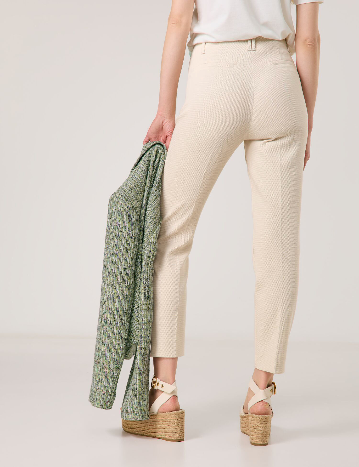 Ці зручні еластичні штани без пояса забезпечують максимальну свободу рухів та елегантний силует. Фігурні виточки забезпечують ідеальну посадку, а бічні розрізи на подолі додають модного акценту. Кишені з кантами завершують позачасовий дизайн.