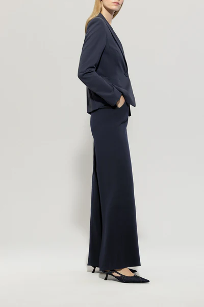 Широкі брюки з триацетатного крепу вільного крою з блискучим атласним боком в класичному, позачасовому стилі зі складками. Спереду - дві бокові прорізні кишені, ззаду - дві врізні кишені з клапаном.