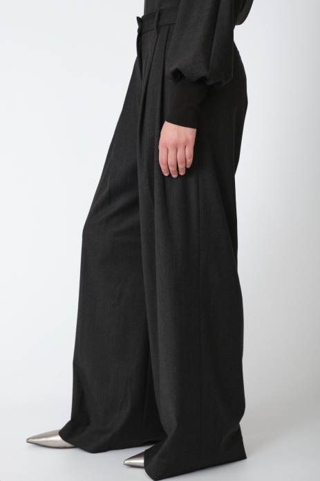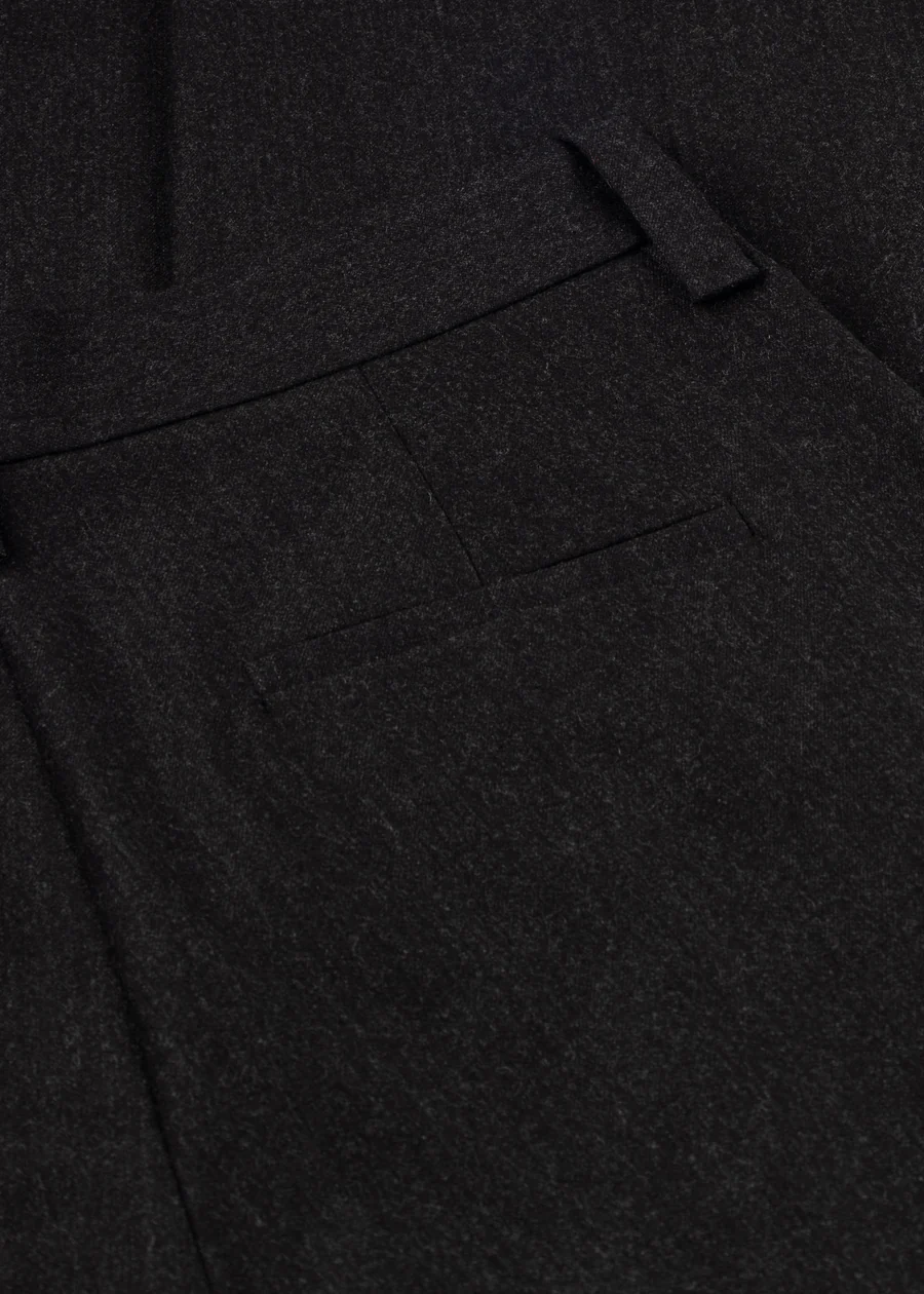 Класичні брюки, виконані з високоякісної натуральної вовни, що забезпечує тепло, комфорт і бездоганну посадку. Модель має прямий подовжений силует із легкими складками спереду, що додають виразності та елегантності. Акуратний крій і стриманий дизайн роблять ці брюки універсальним вибором для повсякденних та офісних образів.