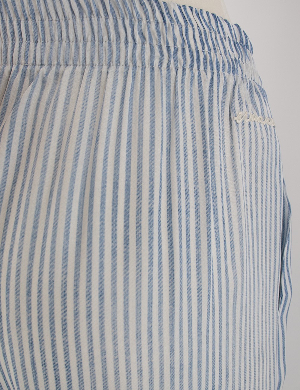 Легкі брюки вільного крою з еластичним поясом на кулісці забезпечують максимальний комфорт і невимушеність у русі. Вертикальна смужка візуально витягує силует, додаючи образу стрункості та динаміки.