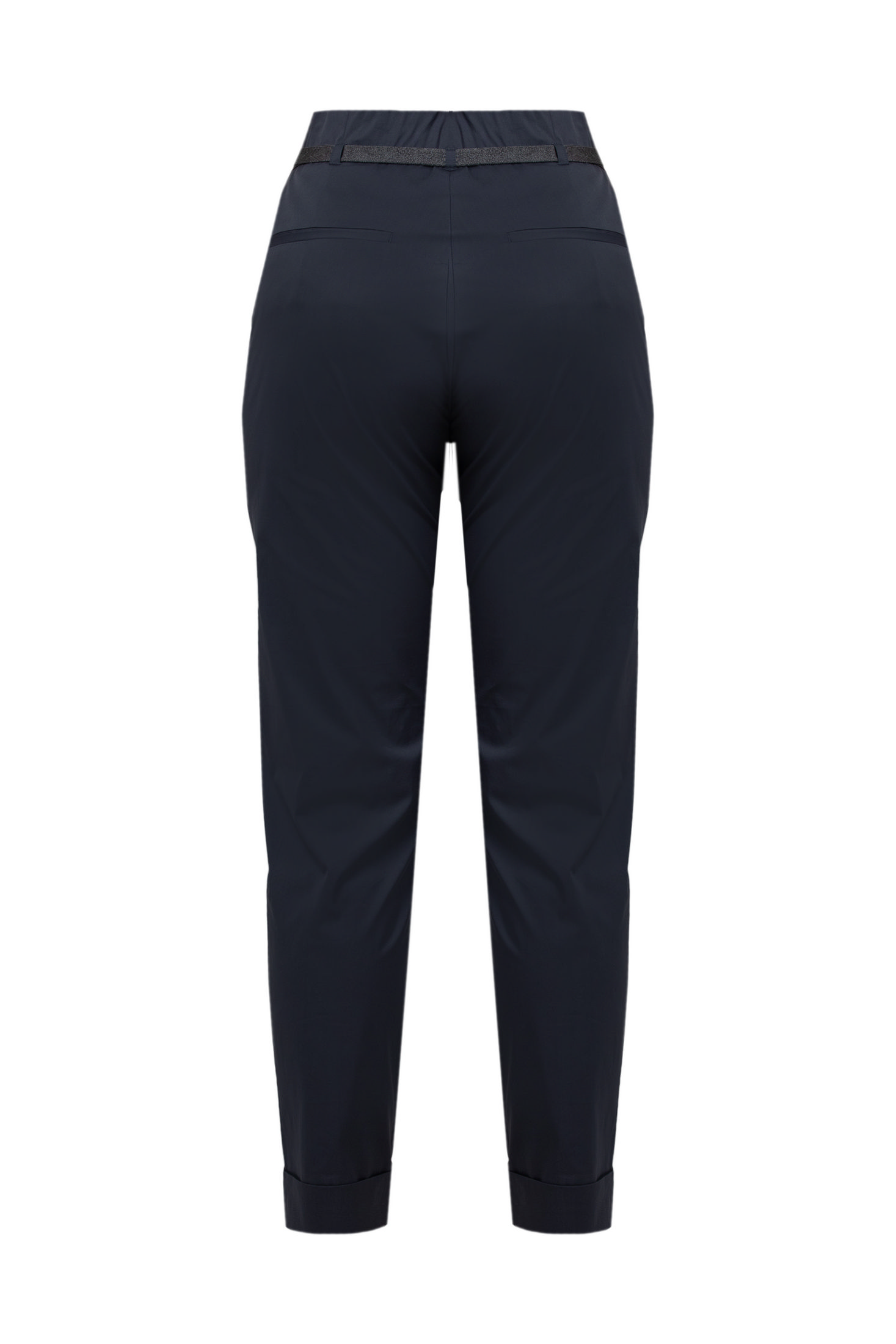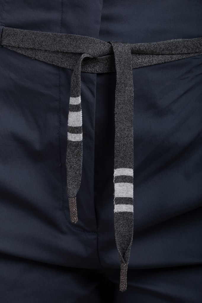 Брюки мають прямий вкорочений крій із трохи звуженим низом та акуратні защипи спереду. Також вони доповнені поясом, який зав'язується на талії, підкреслюючи силует.