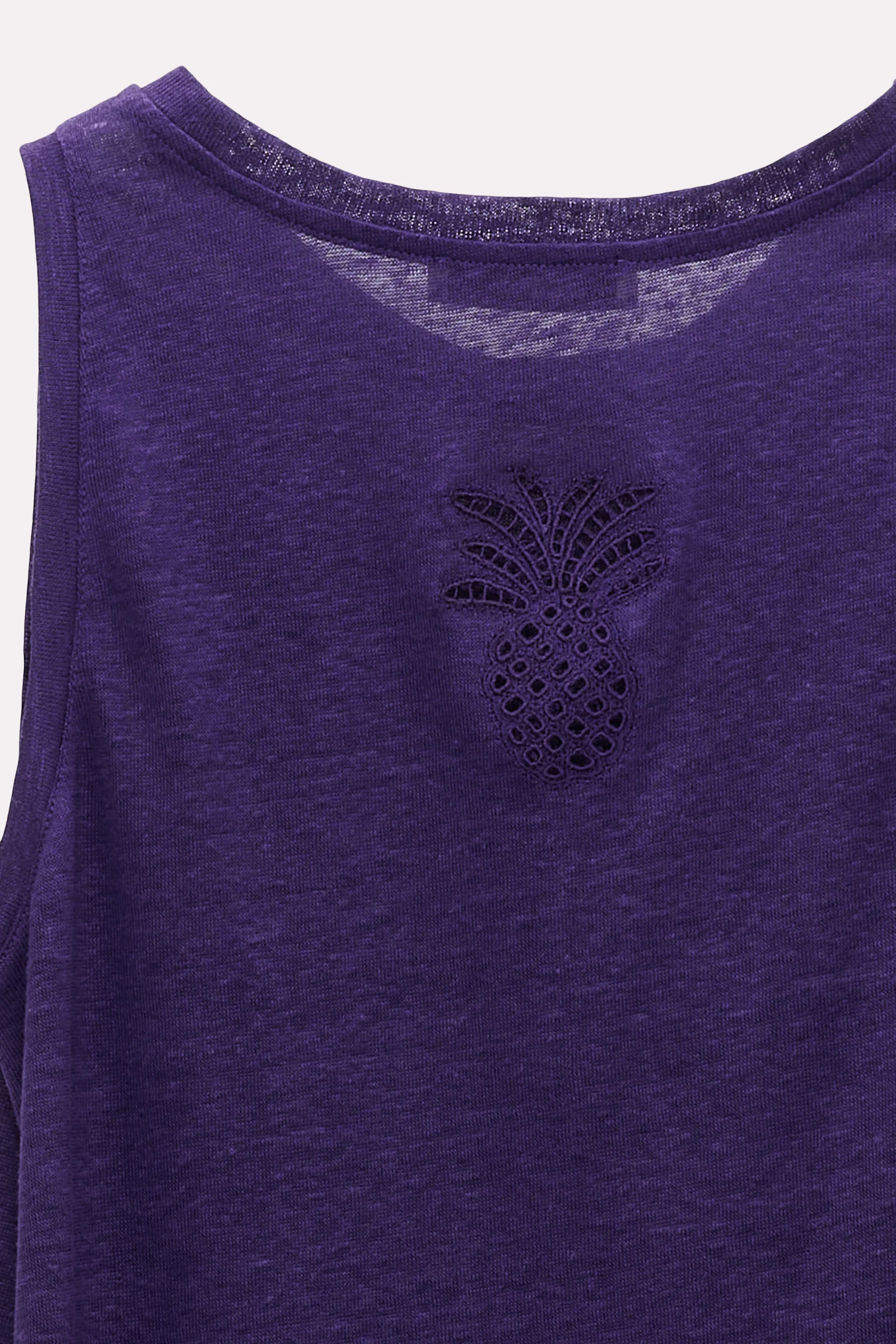 Топ з круглою горловиною виготовлений з коноплі та має розслаблений крій. Легкий фасон має ананас на потилиці.