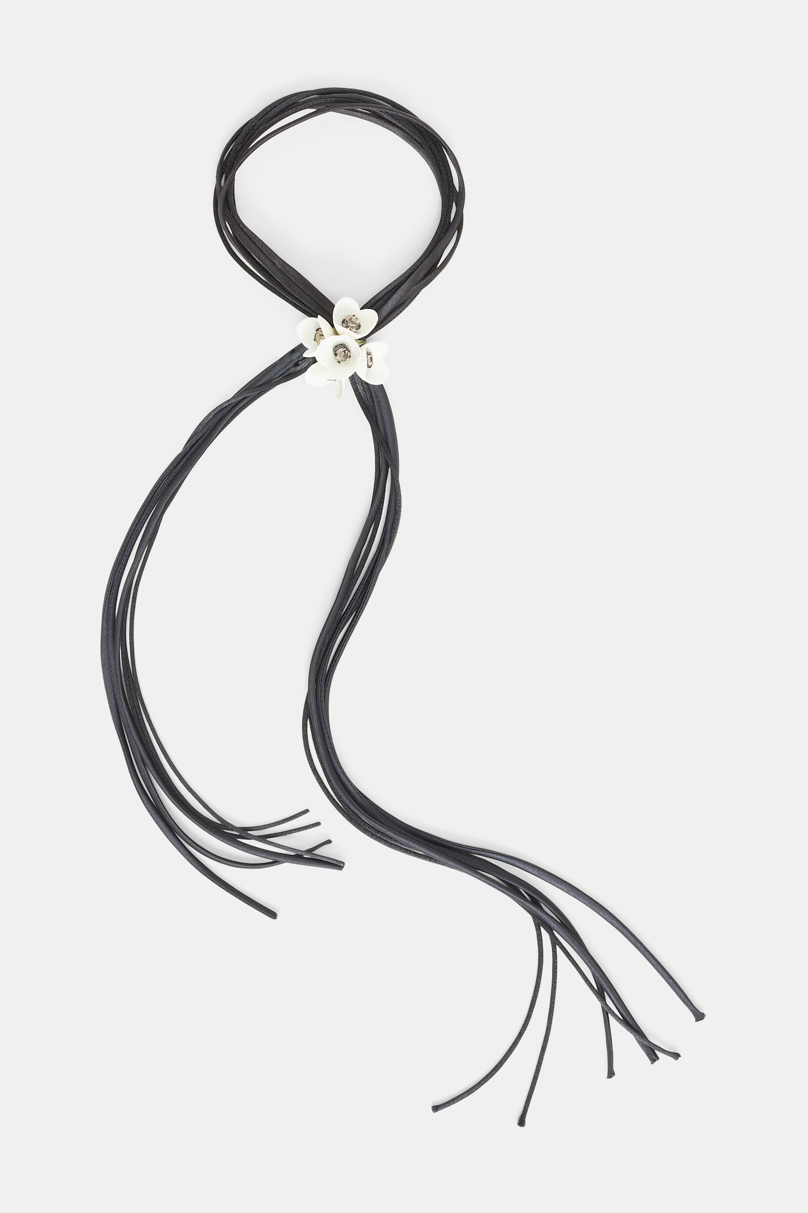 Кольє з атласної стрічки вручну прикрашене квітами та ніжними кристалами. Застібається кольє за допомогою прес-шпильки.