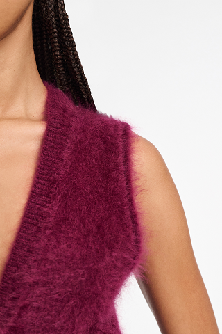 М'якше, ніж м'який: жилет виготовлений з кашеміру в новій спеціальній обробці «пухнастий трикотаж». Жилет має V-подібний виріз горловини та приталений поділ.