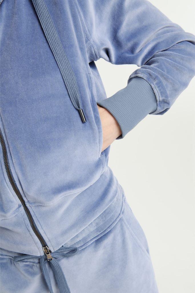 Кардиган на блискавці з оксамитового флісу. Має капюшон, манжети в рубчик.