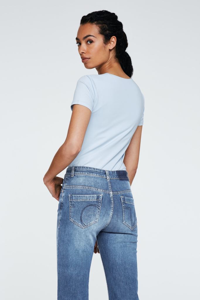 Базова футболка з еластичної бавовни з глибоким круглим вирізом.
