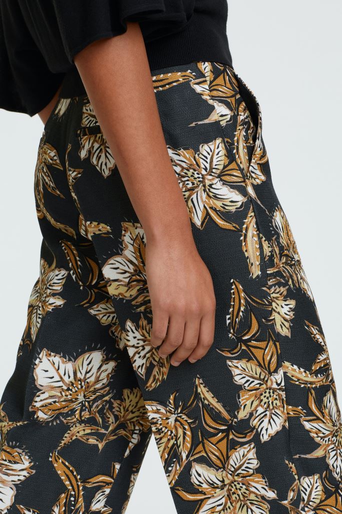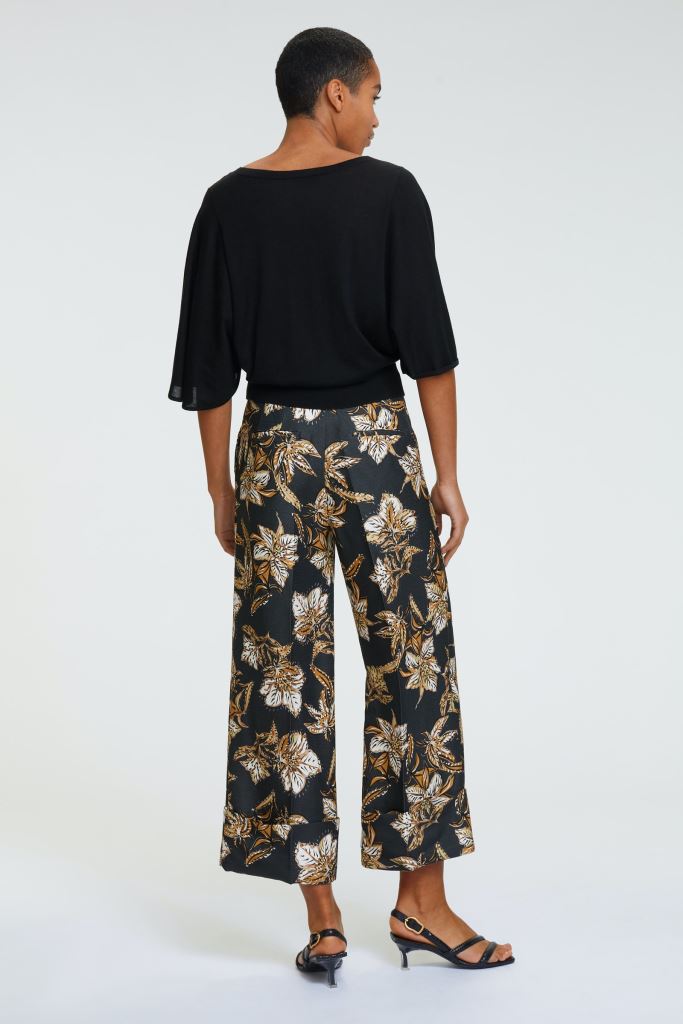 Брюки зі структурованого літнього твіду з ефектним квітковим принтом. Модель укорочена та має широкий крій.