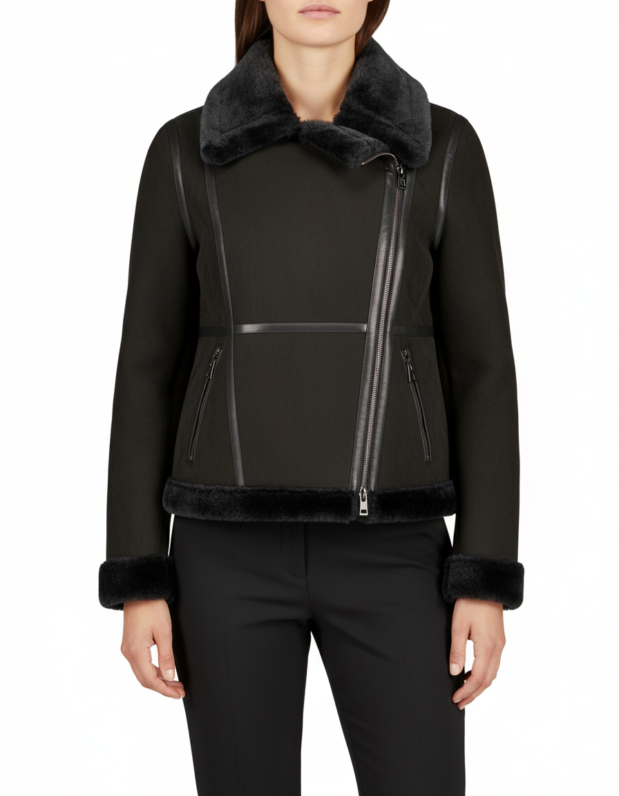 Дублянка поєднує стиль і функціональність, створюючи елегантний зимовий образ. Модель має відкладний комір із м’яким хутром, що забезпечує додаткове тепло й комфорт у холодну пору року. Асиметрична застібка-блискавка додає сучасного характеру, а лаконічний дизайн підкреслюється акуратними швами та практичними кишенями на блискавках.