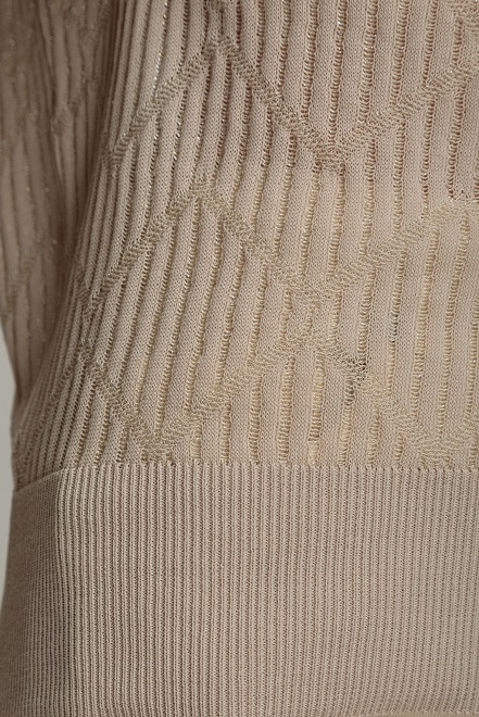 Джемпер з геометричним візерунком, що додає фактурності. Глибокий V-подібний виріз підкреслює лінію шиї та декольте. Рукави мають легкий об'єм, що додає свободи рухів і комфорту.
