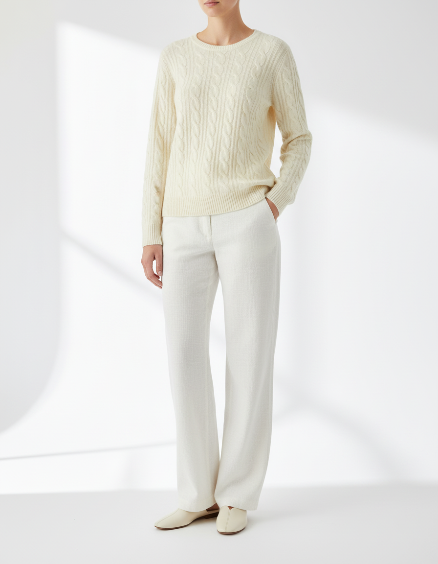 Джемпер Gerry Weber у світлому відтінку виконаний із фактурною в’язкою «коси», що надає йому класичного шарму та тепла. Модель має круглий виріз горловини та довгі рукави, завдяки чому забезпечує комфорт і затишок у прохолодну пору року.