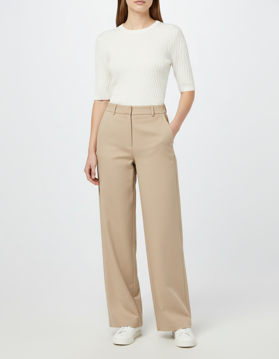 Джемпер має фактурну в’язку з виразним рельєфним візерунком, що додає моделі стильності та глибини. Прямий силует і середня довжина рукава створюють сучасний, лаконічний вигляд, а круглий виріз горловини підкреслює універсальність фасону.