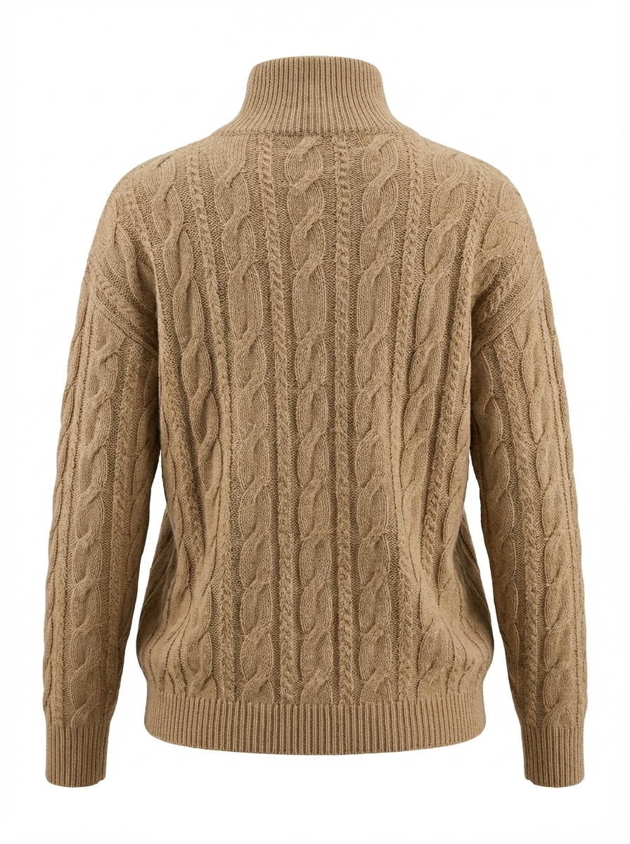 Елегантний джемпер, виконаний з м’якої пряжі з альпаки. Об’ємна фактурна в’язка та вільний силует створюють затишний, сучасний образ. Модель має комфортну посадку, подовжений рукав і м’який комір-стійку, що додає тепла та стилю.