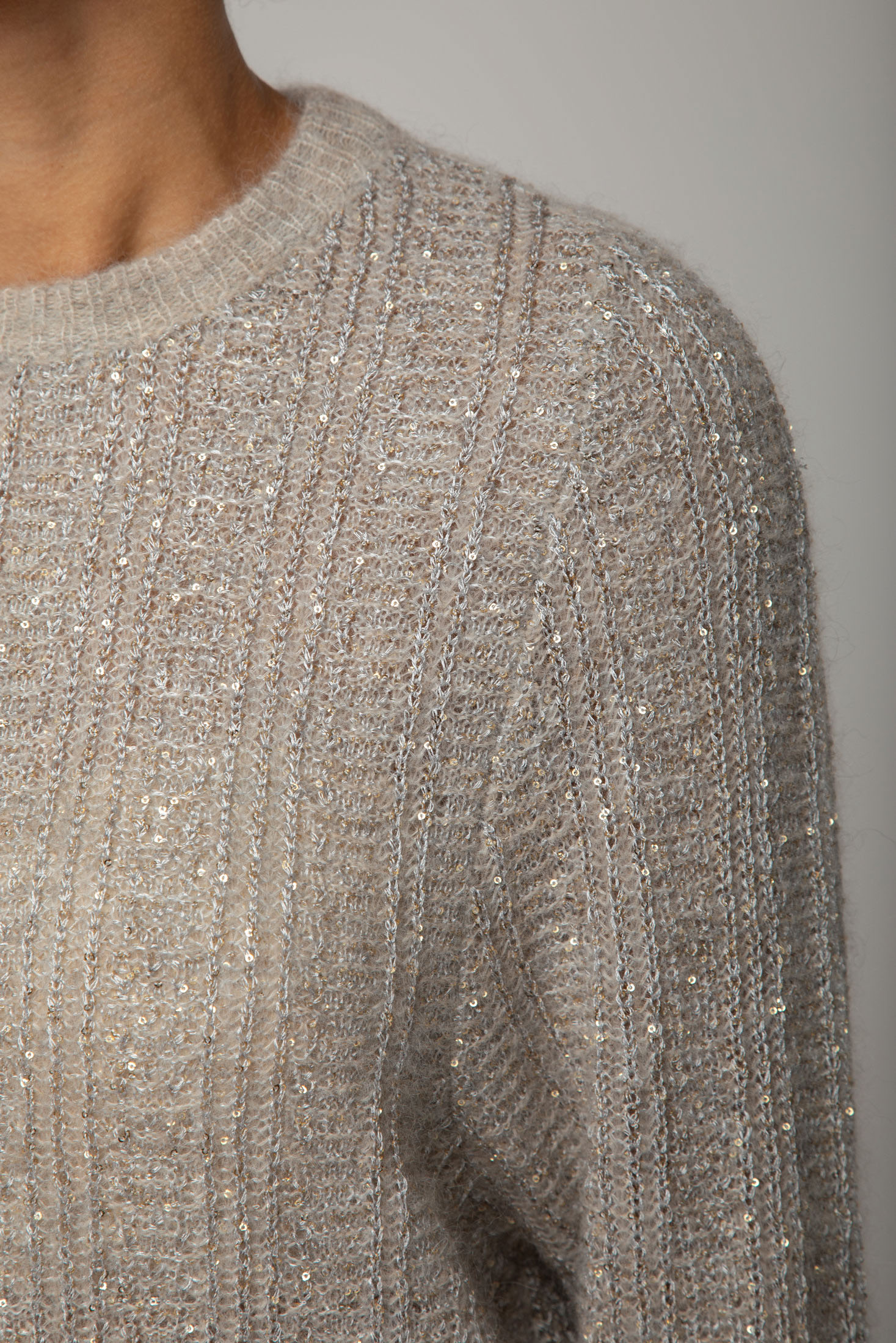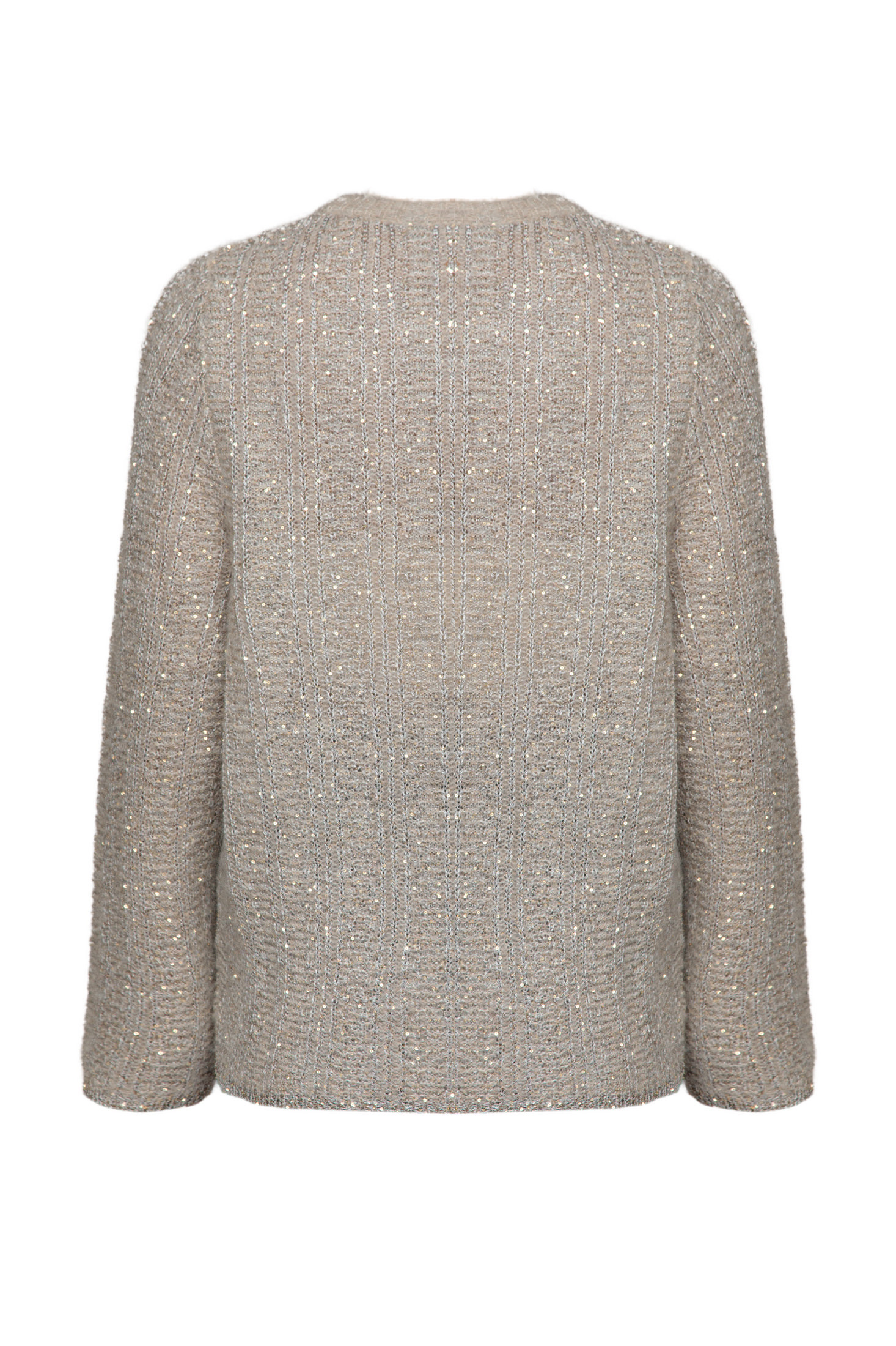 В’язаний джемпер прямого крою з округлим вирізом. Легка фактурна пряжа з ледь помітним блиском надає виробу вишуканості. Комфортна базова модель, що гарно поєднується як зі спідницями, так і з брюками.
