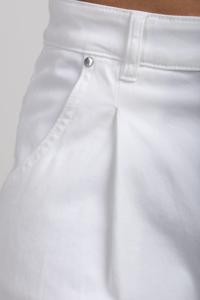 Модель має високу посадку та злегка вкорочений, вільний крій з м’яким заокругленням донизу, що створює сучасний силует і дарує комфорт у щоденному носінні. Класична п’ятикишенькова конструкція, застібка на блискавку та ґудзик, а також паски для ременя роблять ці джинси практичними та зручними.