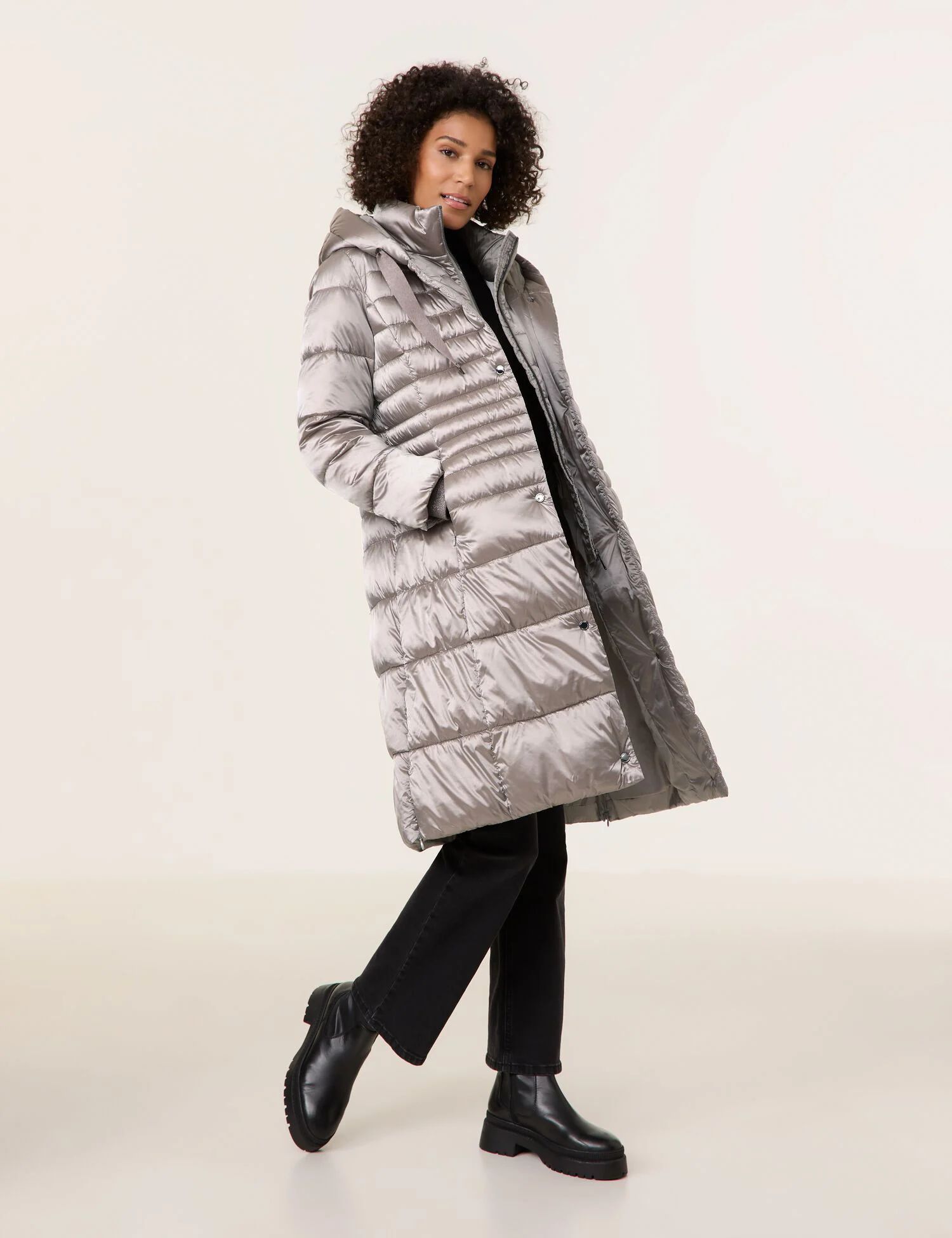 Додайте елегантності своєму образу з довгим пальто! Декоративне стьобання створює привабливий вигляд, а інтегрована вставка на комірі та застібці додає стилю та тепла.