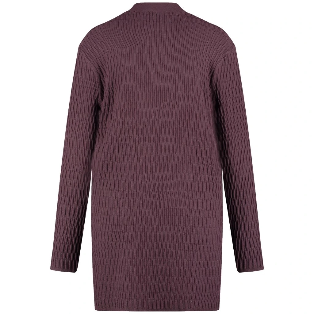 Стильний кардиган у глибокому бордовому відтінку виконаний із фактурного трикотажу, що надає образу виразності та сучасності. Вільний силует без застібок дарує комфорт і невимушеність, роблячи цю річ універсальною для багатьох поєднань.