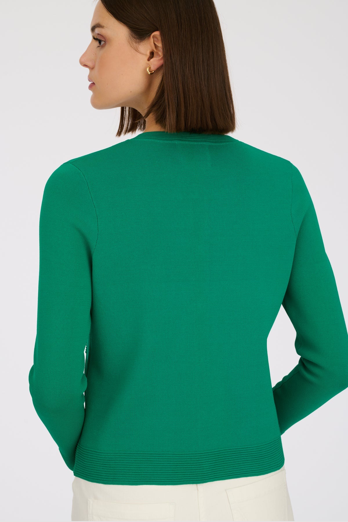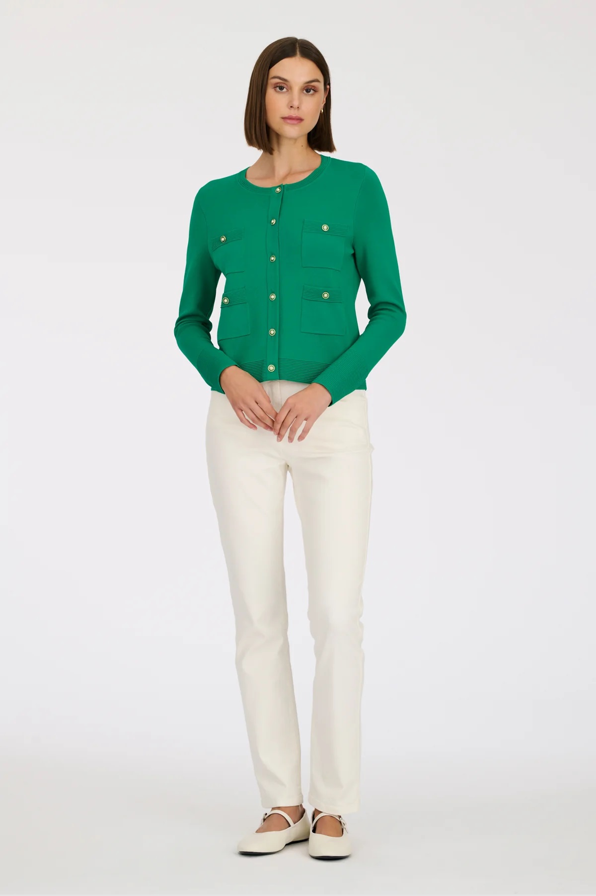 Елегантний кардиган з індивідуальними ювелірними ґудзиками Weill для шикарного та комфортного образу. Має круглий виріз горловини, 4 накладні кишені та ребристу окантовку з верхньою строчкою.