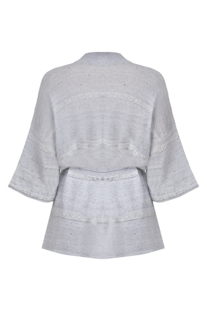 Дана модель має вільний крій, укорочені широкі рукави та пояс для фіксації на талії. Кардиган створює легкий і невимушений образ.