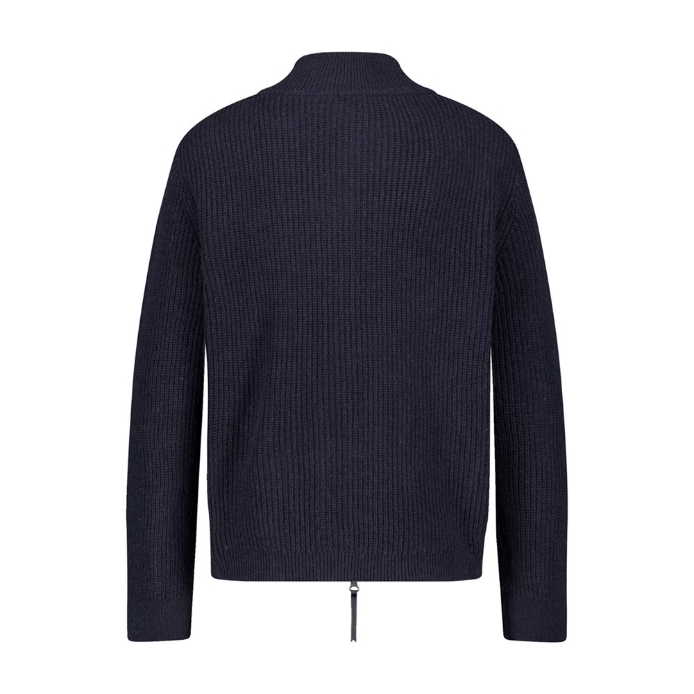 Модель має прямий, трохи вільний крій, що забезпечує зручність та комфорт у щоденному носінні. Кардиган зв’язаний фактурною в’язкою, яка додає виробу текстури та сучасного вигляду. Оснащений застібкою на блискавку по всій довжині, що робить його зручним для швидкого одягання та знімання. Високий комір-стійка захищає шию від вітру та додає кардигану спортивно-класичної ноти.