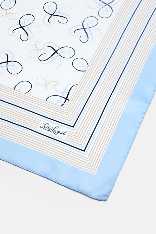 Шовковий фуляр з витонченим візерунком Monogram і підписом Luisa Spagnoli.