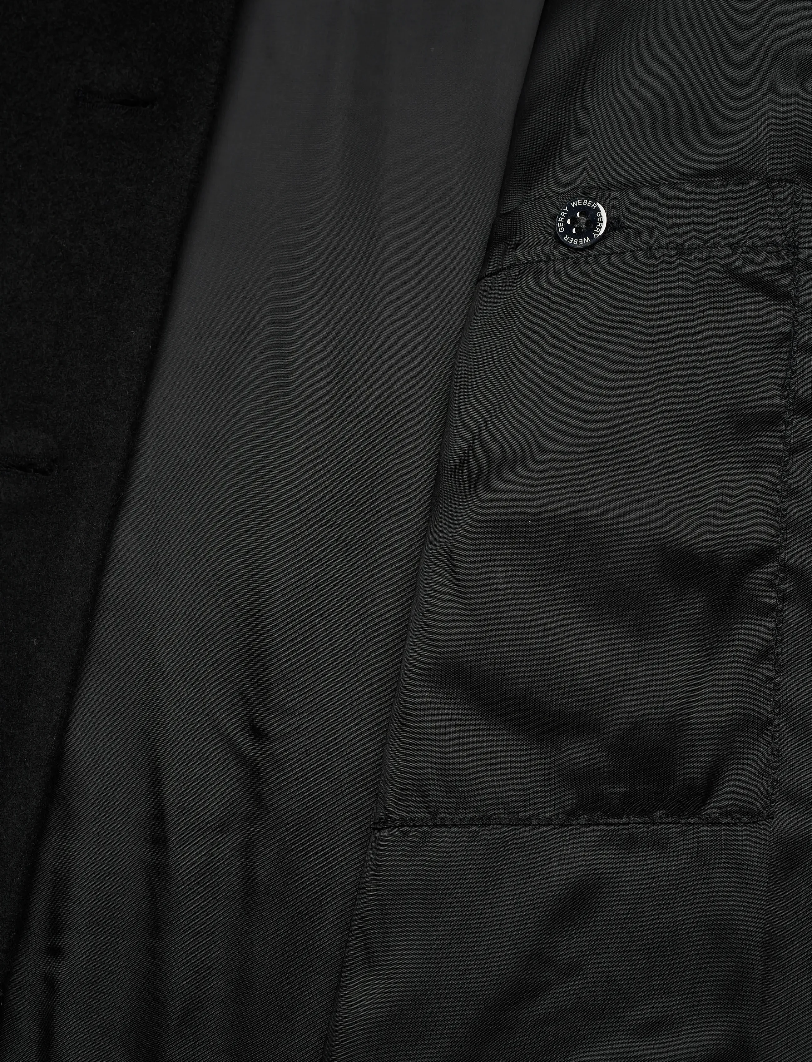 Елегантне жіноче пальто виконане у чорному кольорі з класичним коміром та застібкою на три гудзики. Прямий крій надає силуету вишуканості та дозволяє легко поєднувати пальто як з діловим стилем, так і з повсякденними образами.