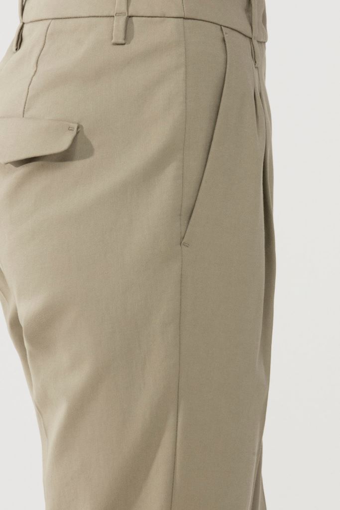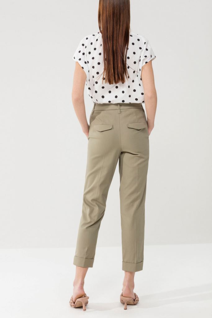 Укорочені брюки зі складками з розкішної подвійної бавовняної тканини. Мають бокові кишені та кишені позаду з клапанами.
