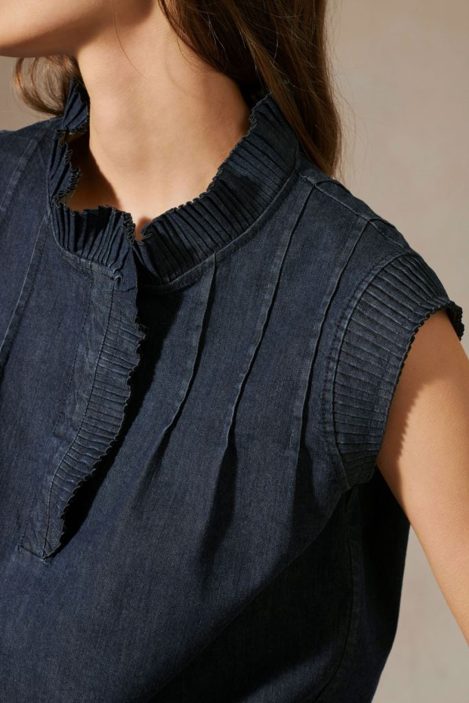 Топ із сертифікованої BCI бавовни з плісованими деталями. Топ из сертифицированного BCI хлопка с плиссированными деталями.