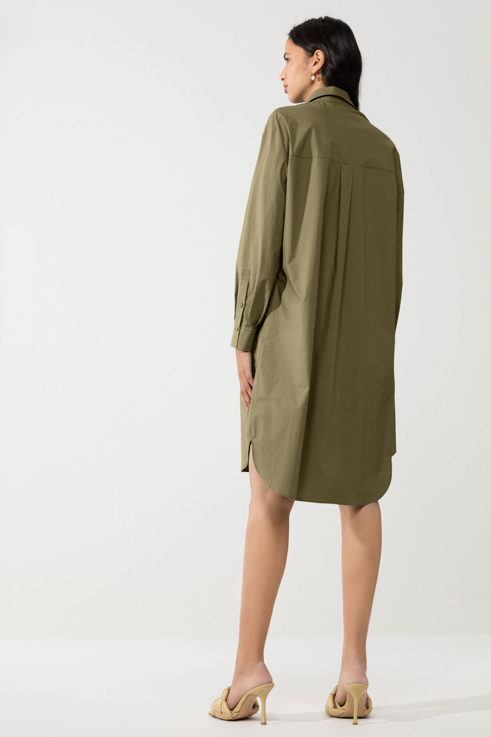 Сукня-сорочка з довгими рукавами. Має вільний крій, застібається на гудзики по всій довжині. Класичний комір.