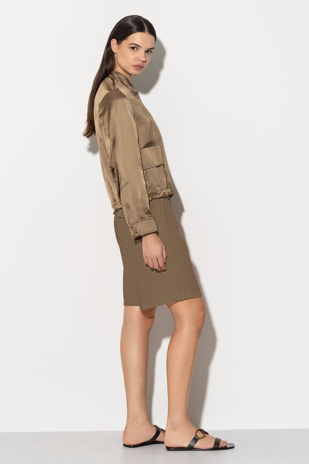Шорти-бермуди з прорізними кишенями з високоякісної лляно-віскозної суміші. Шорти із завищеною талією мають сучасний, елегантний вигляд завдяки складкам та накладним кишеням з клапанами позаду.