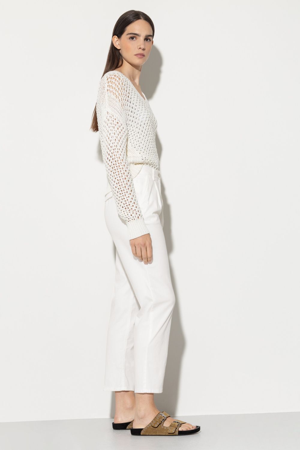 Брюки прямого крою з автентичного деніму RFD зі стрейчем з легкими складками. Мають бокові кишені та кишені з клапанами позаду. Нормальна посадка.