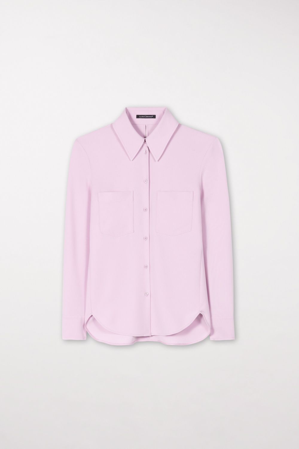 Блуза з елегантного габардину зі стрейч-тканини з потайною застібкою на гудзиках і великими нагрудними кишенями. Вирізні деталі під коміром на спині доповнюють дизайн.