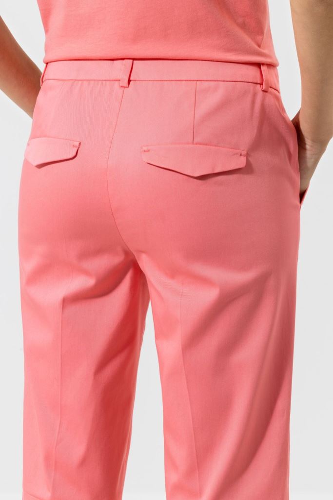 Габардинові брюки злегка укороченого крою з кльошем. Відкритий поділ додає невимушеності класичному дизайну.