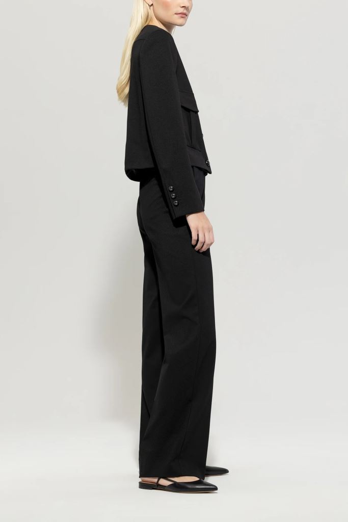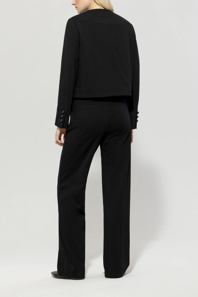 Довгі прямі брюки з важкої тканини punto milano з легким еластичним ефектом. Прямий крій зі складками, дві бокові прорізні кишені та дві врізні кишені ззаду надають цим брюкам класичного вигляду.