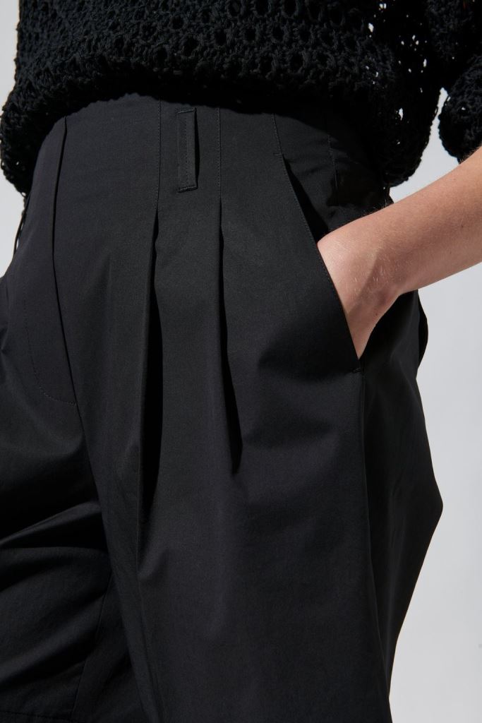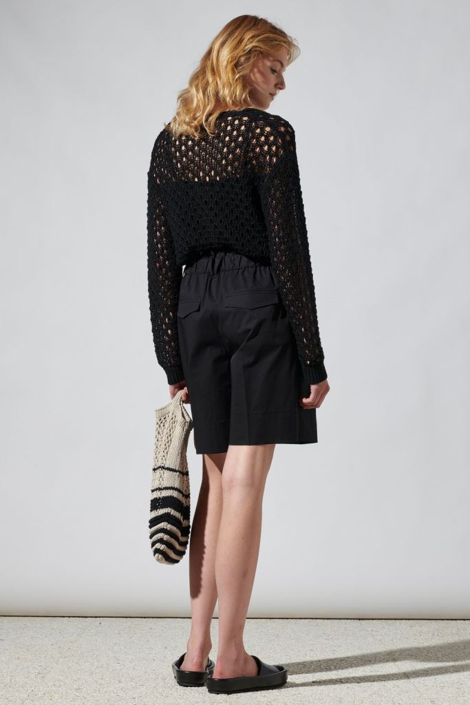 Легкі літні шорти зі стрейчевого габардину з частковим еластичним поясом і зміщеними петлями. Складки підкреслюють елегантний образ.