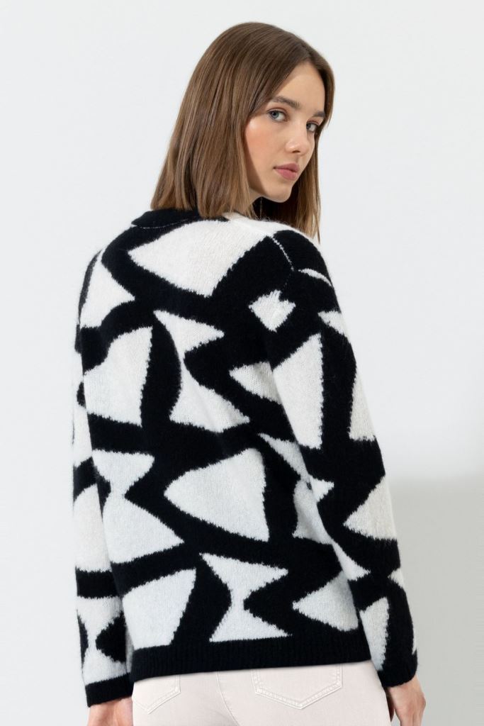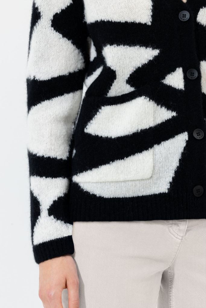 Кардиган з графікою забезпечує винятковий комфорт завдяки м'якій текстурі. Кардиган с графикой обеспечивает исключительный комфорт благодаря своей мягкой текстуре.