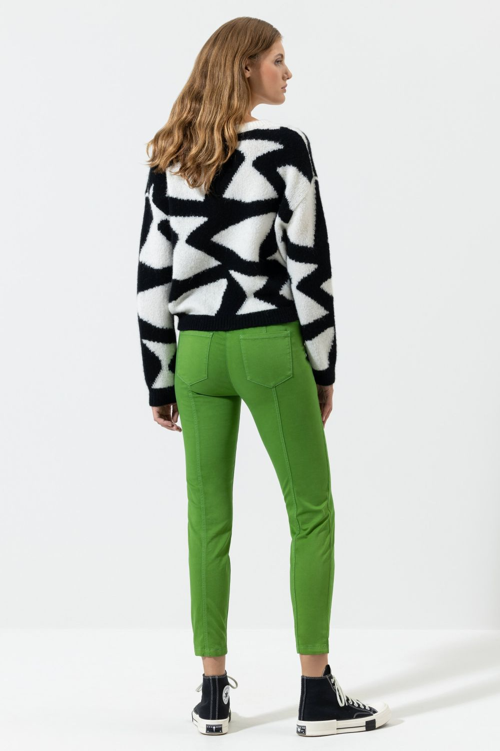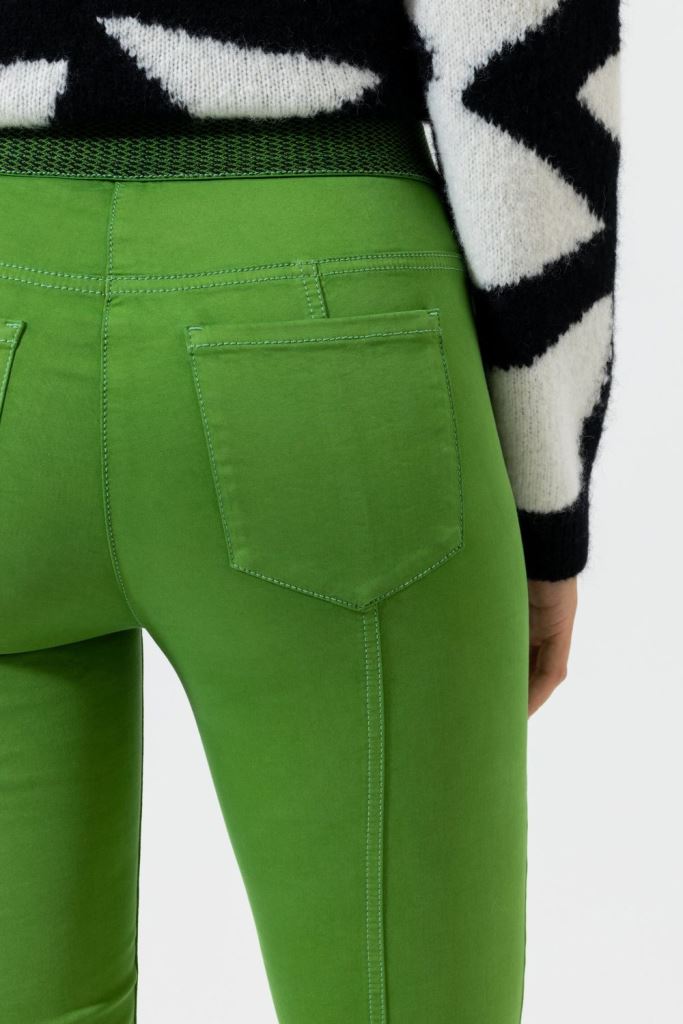 Завужені брюки з укороченими штанинами та витонченими деталями швів. М'який еластичний матеріал і частково еластичний пояс роблять ці штани зручним предметом одягу.