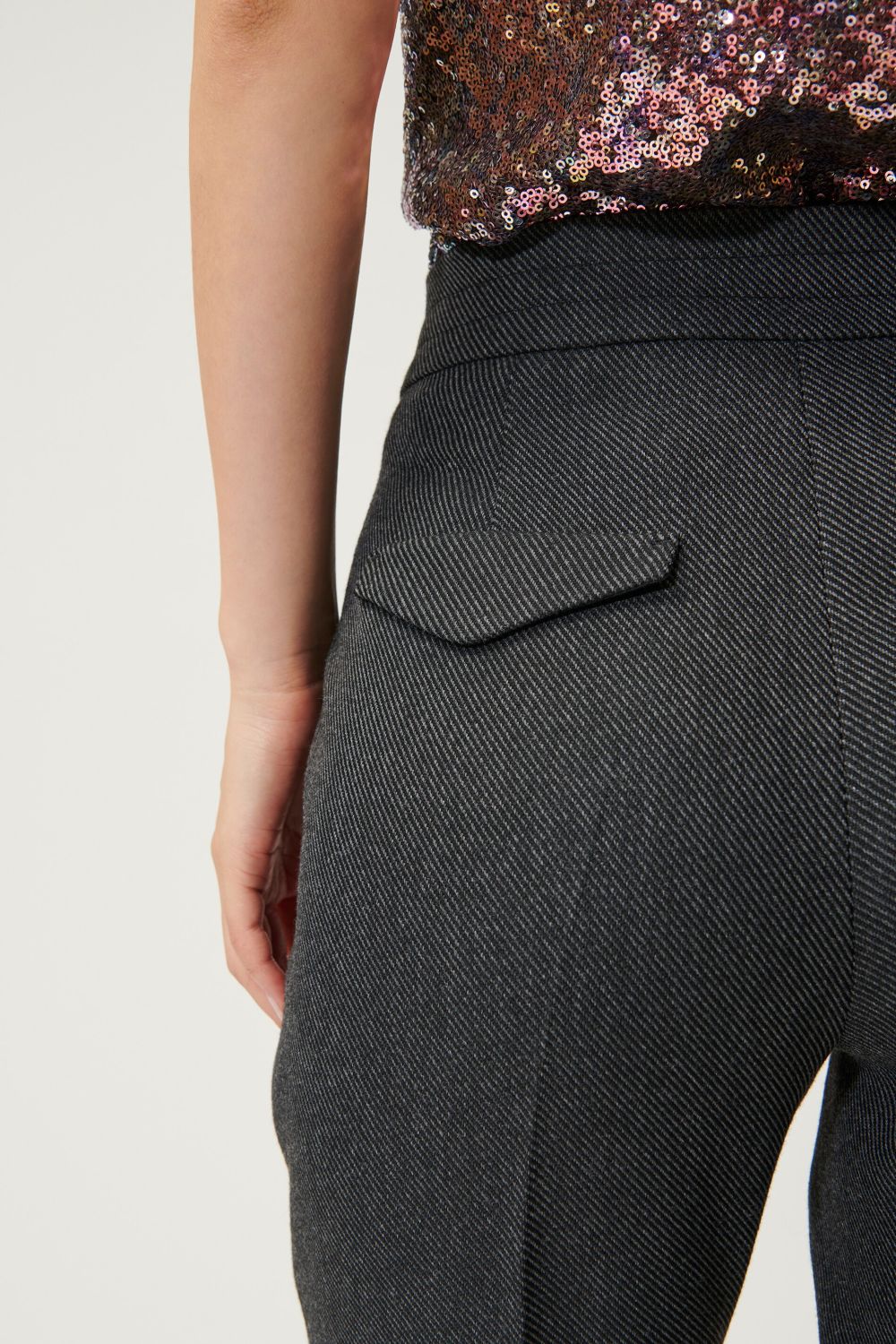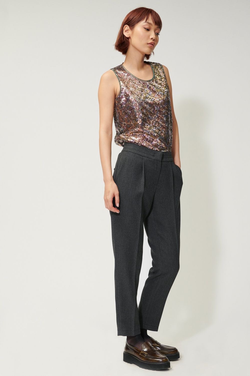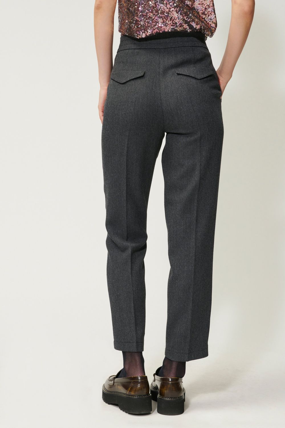 Брюки в стилі Lounge із тонкотканого двоколірного габардину. Складки на талії та на штанинах доповнюють дизайн.