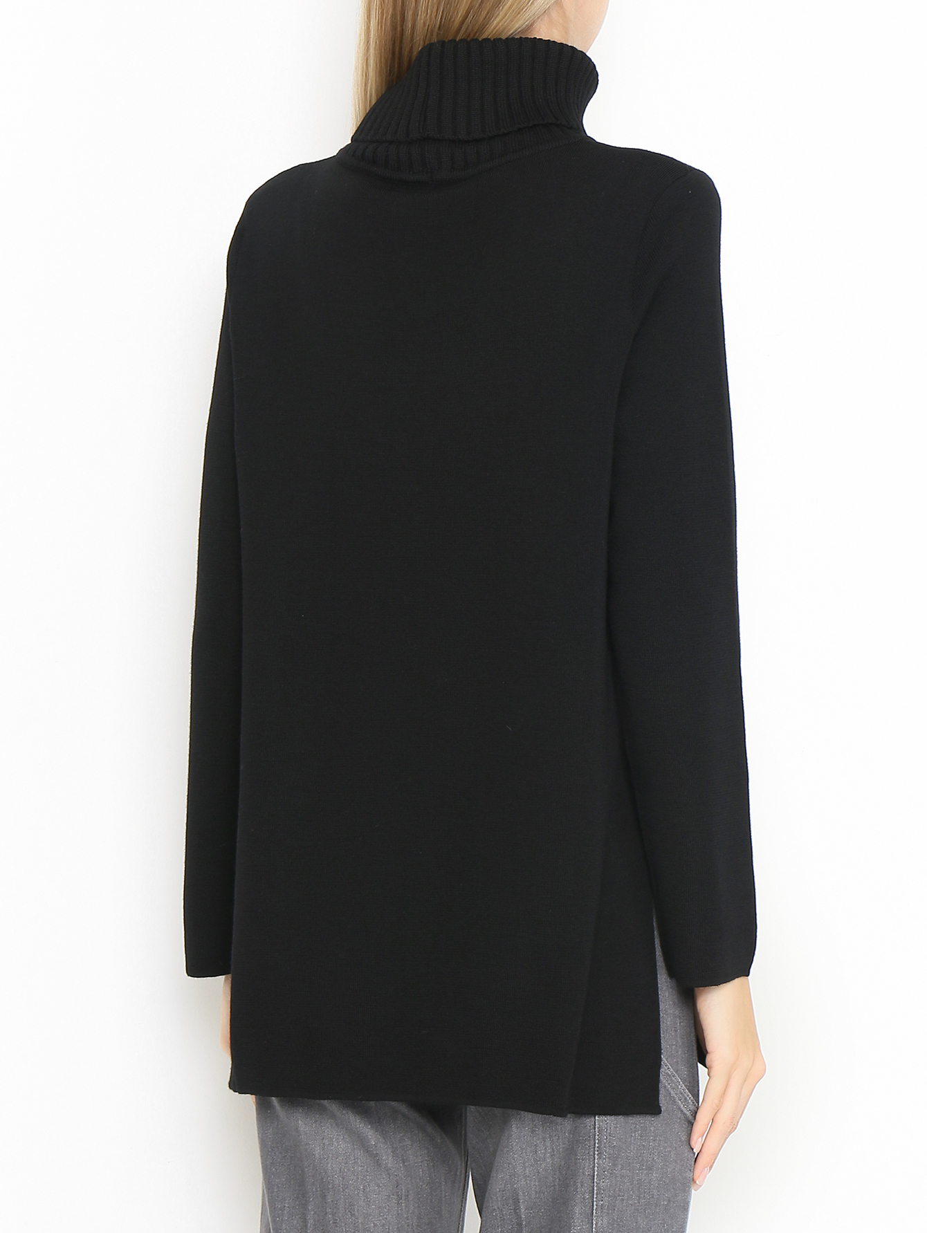 Джемпер з бритої вовни з ребристою трикотажною водолазкою. Довгий рукав, центральна кокетка, невеликий розріз позаду.
