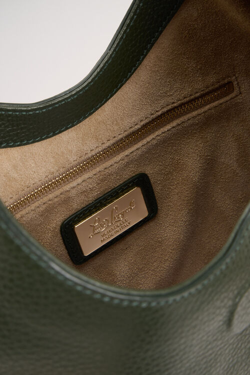 Сумка через плече з натуральної вичиненої шкіри. Регульована ручка, що застібається з обох боків, декоративна інтарсія, магнітна застібка, позолочена металева деталь «LS».