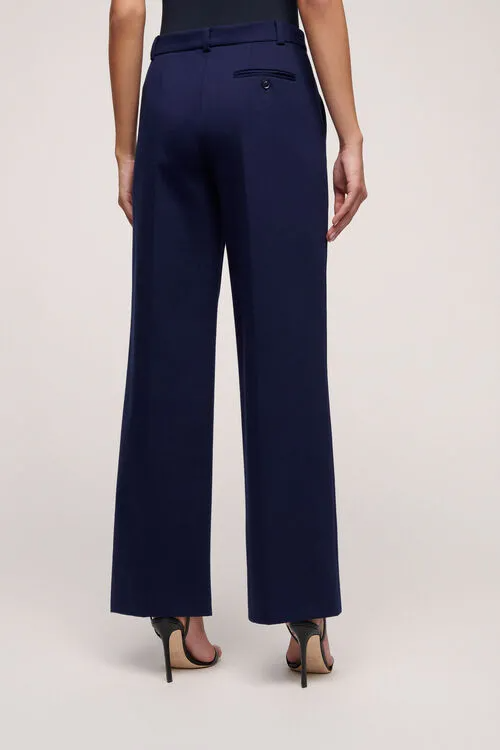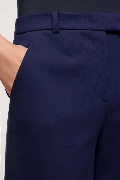Бавовняні брюки-палаццо з легкого еластичного полотна. Застібка спереду на блискавку та гачок. Ззаду - дві скошені бокові кишені та нагрудна кишеня на ґудзиках.