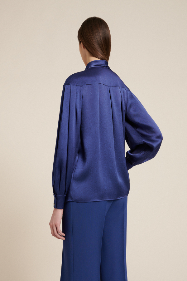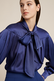 Блуза з шовкової тканини з широкими рукавами і шарфом.