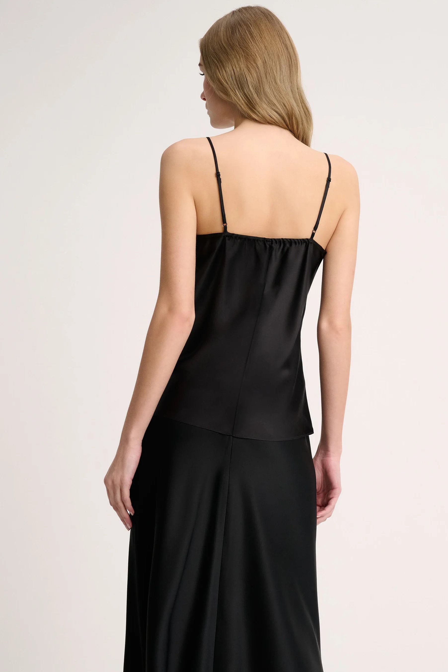Сліп-топ з чистого шовку. З мереживною аплікацією та регульованими бретелями.