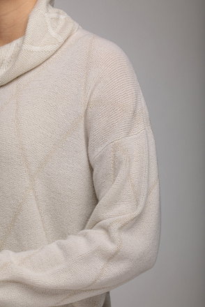 Джемпер виготовлений з міксу вовни, кашеміру та віскози, прикрашений візерунком аргайл. Має приспущену плечову лінію та високий комір. Поділ та манжети в рубчик.