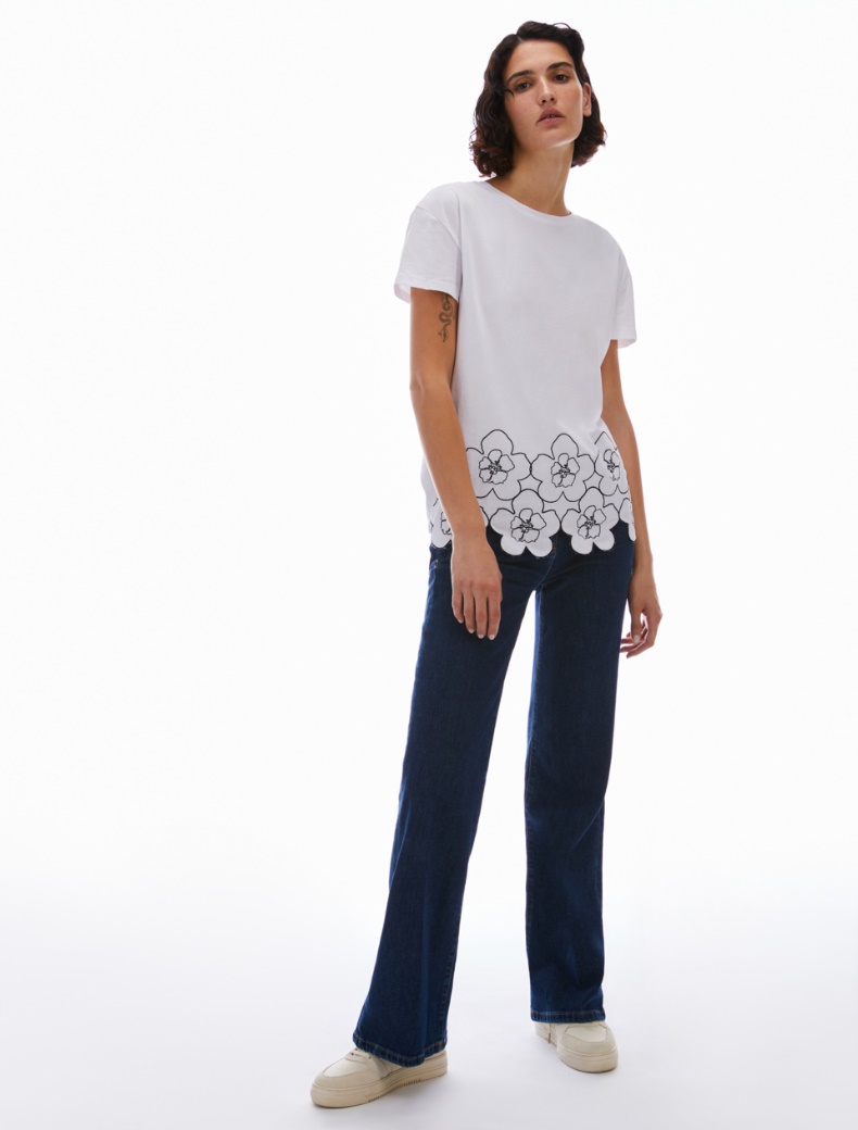 Бавовняна футболка з круглою горловиною з вишивкою.