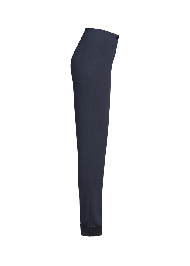 Штани-смокінги в стилі кежуал з блискучим одворотом вражають своєю укороченою вузькою формою.