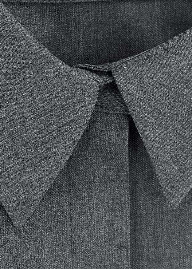 Лаконічна блуза з шовку. Має класичний комір, прихована застібка на гудзики.