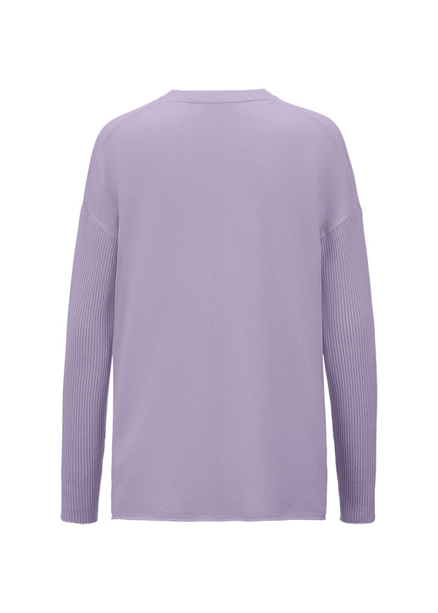 М'який джемпер з суміші вовни мериноса, шовку і кашеміру. Має вільний крій, V-подібний виріз, щільні ребристі рукави.