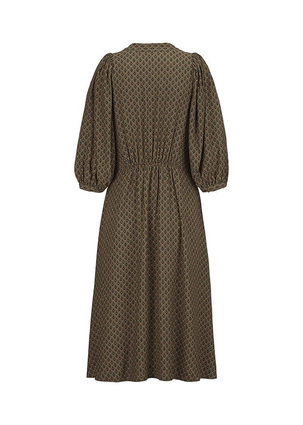 Сукня-міді вільного крою з віскози. Має об'ємні рукави.